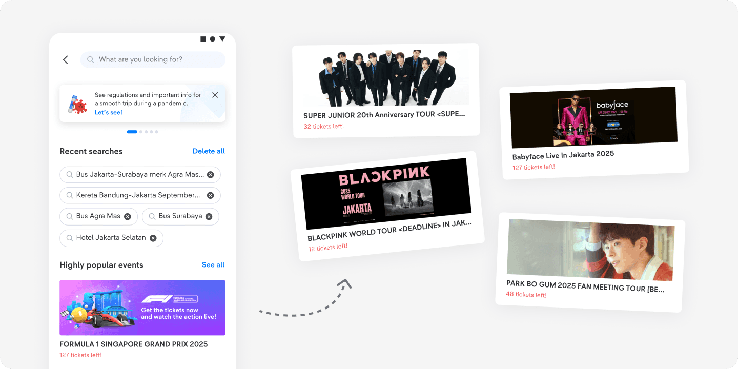 In this state, users are not typing anything yet. To support easier navigation, we highlight trending events, as data shows that ongoing events are frequently searched and deliver high conversion rates (CVR) in our global search.
